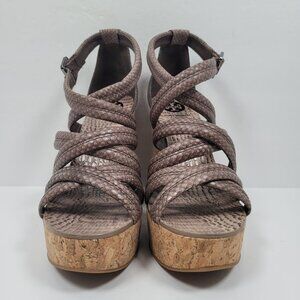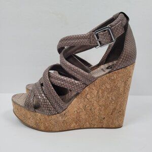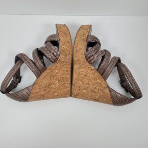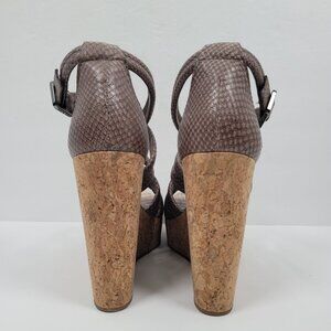 Tory Burch Taupe Python Women's Cork Wedge Embossed Leather Strappy Sandals US Size 10.5M