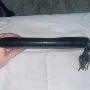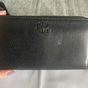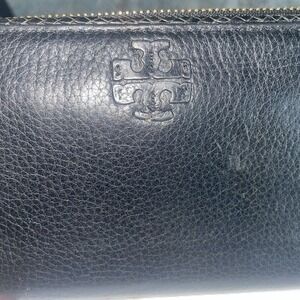 Tory Burch Taylor Zip Continental Wallet in Black Pebbled Leather With Tassel. Condition is Pre-owned. Shipped with USPS Ground Advantage.