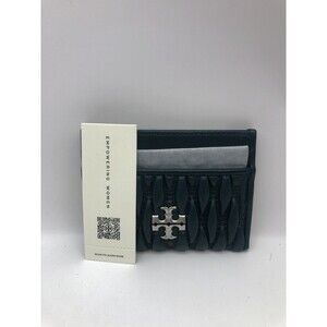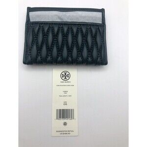 Tory Burch Teal Night Ruched Leather Kira Quilted Card Case Mini Wallet New