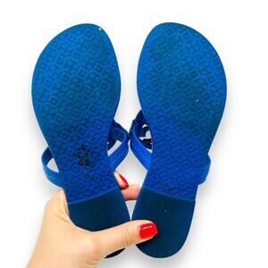Tory Burch Tejus Embossed Leather Miller Sandal Bright Tropical Blue 5.5 Women’s