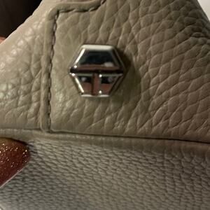 Tory Burch Thea Messenger Cross Body Bag French Gray Pebbled Leather w/Tassels