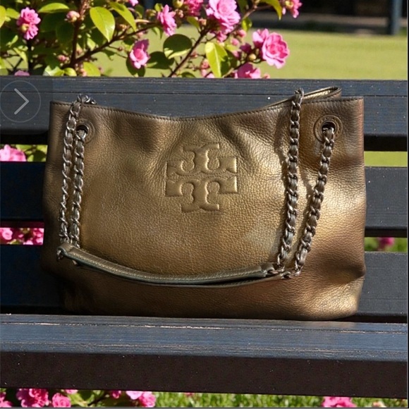 Tory Burch Thea Metallic Gold Chain Shoulder Slouchy Tote