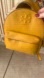 Elegant Tory Burch leather backpack in rich mustard leather. Features iconic logo and front pocket. Bag scarf removable