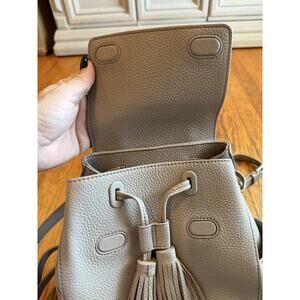 Tory Burch Thea Mini Backpack Womens Gray Pebbled Leather Tassel Drawstring