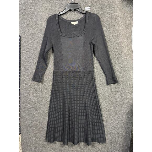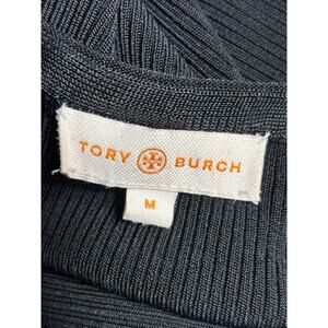 Tory Burch Thea Ribbed Knit Dress Womens Size M Black Long Sleeve Ballet Neck
