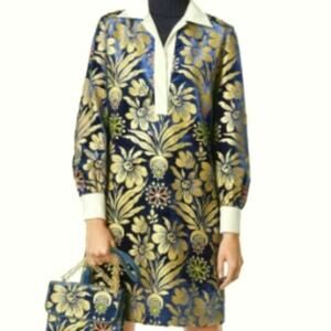 Tory Burch Thelma Floral Print Shift Dress Blue Dahlia size 6