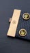 Chic black bracelet with gold studs. Perfect for a stylish touch.