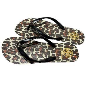 Tory Burch Thin Flip Flop Sandals Animal Leopard PVC/EVA Gold Logo Sz 7 NWOT