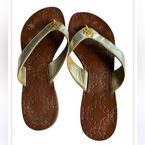 Tory Burch Thora Metallic Gold Thong Flat Sandals Size 9