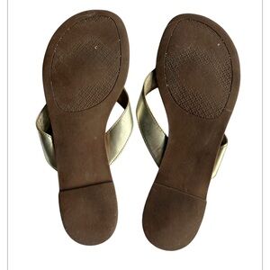 Tory Burch Thora thong flat sandals in metallic gold. Minor discoloration of footbed. Discoloration of thong. See photos. Size 9
