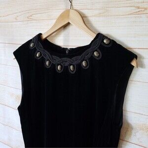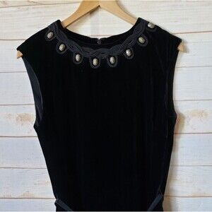 Tory Burch Thora Velvet Sleeveless Round Neck Embellished Belted Dress Size 8