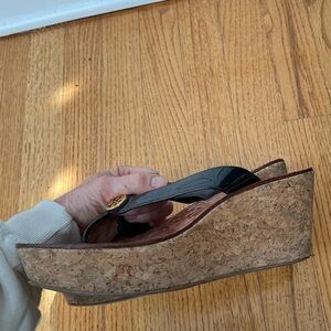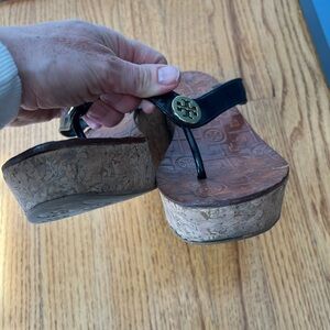 Tory Burch Thora Wedge Thong Slip-On Sandal Black & Tan Wedge Flip-Flops Size 9