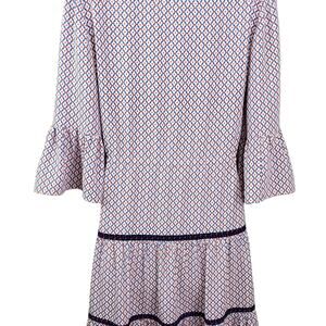 Tory Burch Tiered Printed Midi Dress Size 0 Drawstring Waist 3/4 Flutter Sleeve