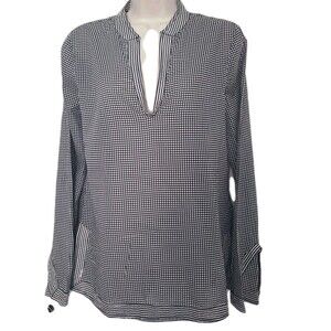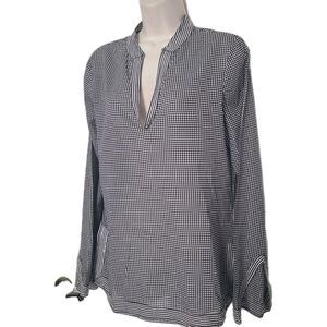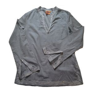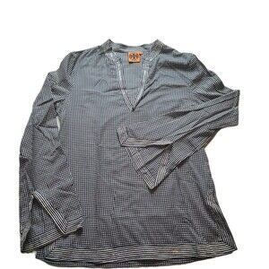 Tory Burch Top Tunic Navy White Sequin Split Neck Polka Dot Long Sleeve Size 8