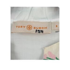 Tory Burch Top embellished ribbon embroidered tunic white size 6