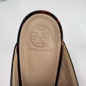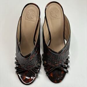 Tory Burch Tortoise Shell Brida Mule Heels Peep Toe Slip-on Sandals Size 8 M EUC