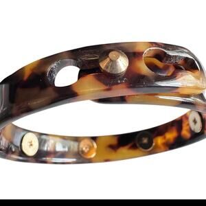 Stylish tortoise shell bangle featuring gold accents. Perfect for any occasion.