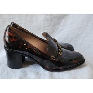 Tory Burch Tortoise Shell Patent Leather Heeled Loafers Size 9.5