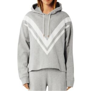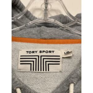 Tory Burch Tory Sport Chevron Hooded Sweatshirt Size Large Gray French Terry