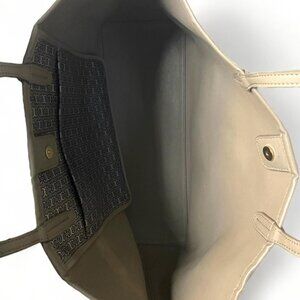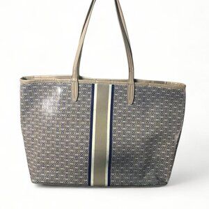 Tory Burch Tote Bag Gemini Link LARGE Coated Canvas/Leather Tan/Grey/Blue (EUC)