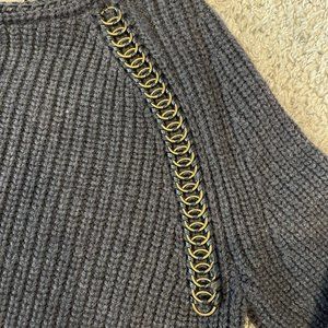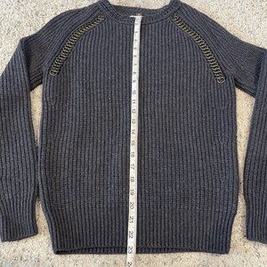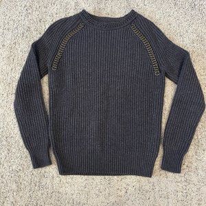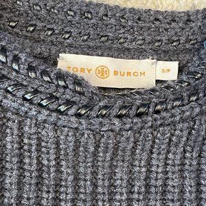 Tory Burch Trudy Chain Leather Detail Pullover Wool Sweater Navy Blue Womens S