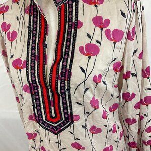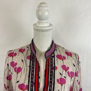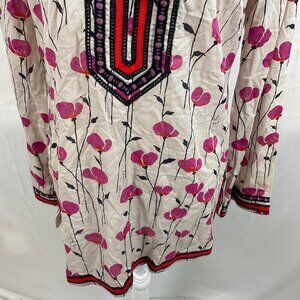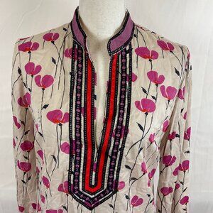 Tory Burch Tunic Top 8 Beige Purple Red Black Floral Embroidered Long Sleeve