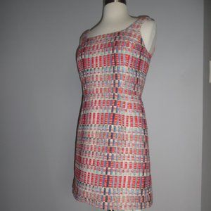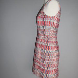 Tory Burch Tweed Red Blue Ribbon Sleeveless Metallic Career Work Shift Dress XS