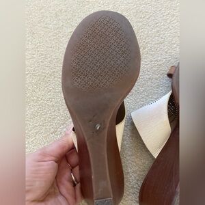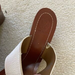 Tory Burch Two Tone Perforated Logo Mid wedge size 7.5, gentle worn