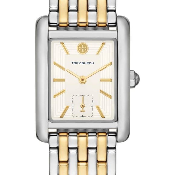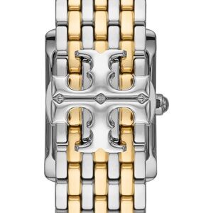 Clean-lined and elegant. The Eleanor Watch features a geometric case, Double T clasp and classic link bracelet in multi-tone stainless steel.