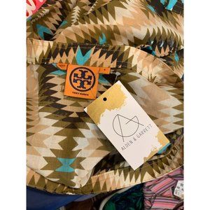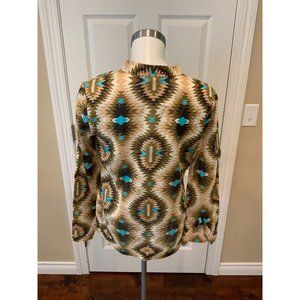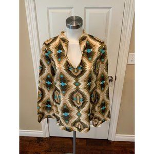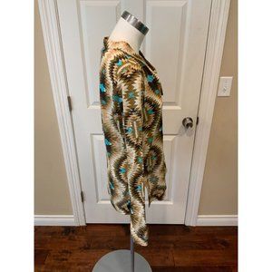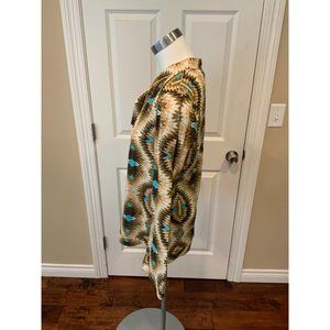 Tory Burch V-Neck Tan & Green Geometric Long Sleeve Tunic, Size 6