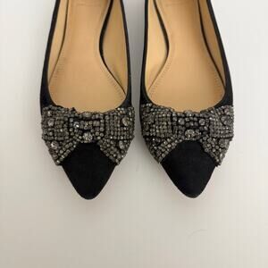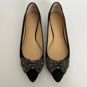 Tory Burch Vanessa Suede Rhinestone Bow Flats Sparkly Crystal Black US 8M