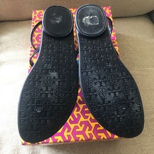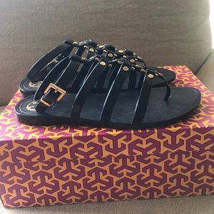 Navy Tory Burch gladiator sandals. Gold hardware. Jelly type material. Size 7. Rarely worn. Great condition (pretty much look brand new!)
