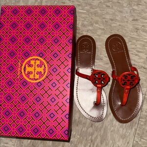 Tory Burch Vibrant Orange and Rich Brown Sandals Miller Thong Sandal