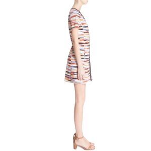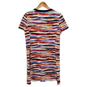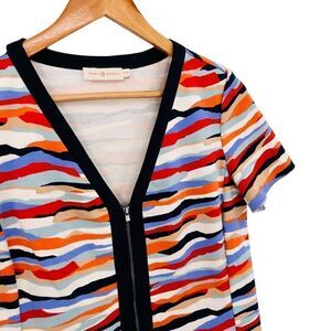 Tory Burch Vienna zip up dress size medium orange red and midnight. Short sleeve with stretch and flattering fit. See photos for measurements and fabric content. Excellent condition