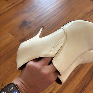 Item description: white leather ankle boot with a 2.5 inch heel