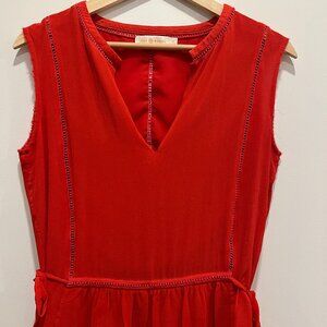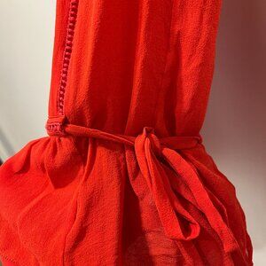 Tory Burch Waist Tie Sleeveless Plunge Neck Red Silk Blouse