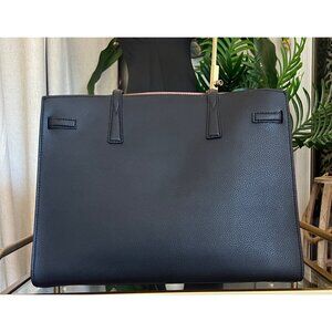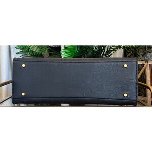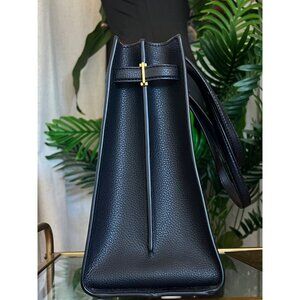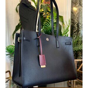 Tory Burch Walker Robinson Black Leather Tote Bag With Burgundy Tag & Gold Hardw