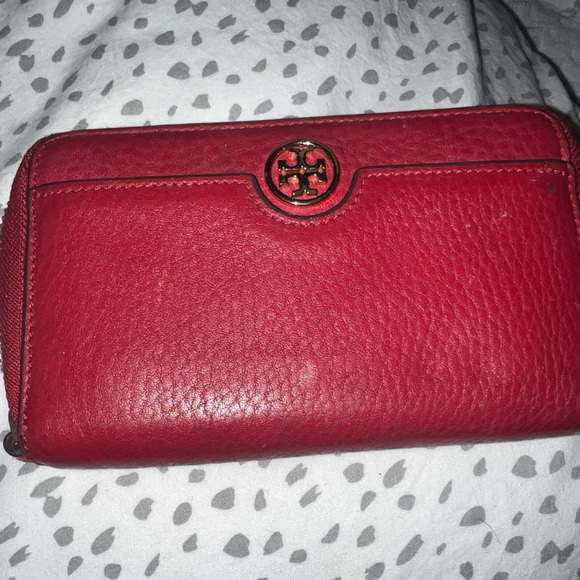 red Tory Burch wallet- no signs of wear on the interior (see images). Some scruffs on the exterior.