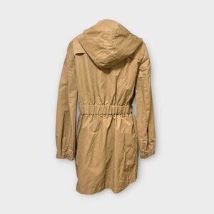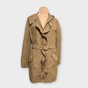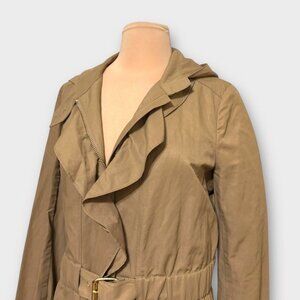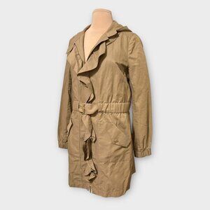 Tory Burch Warren Ruffle Coat 4 Tan Jacket Raincoat Trench Zip Hooded Classic