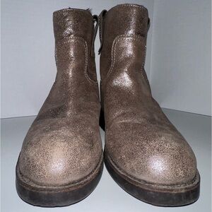 Tory Burch Wayland Ankle Boots Metallic Pewter Leather Lamb Shearling 10 M