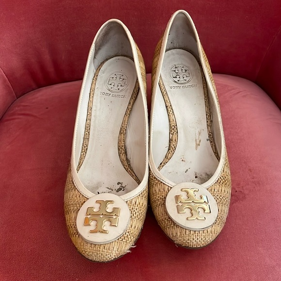 High end Tory Burch wedge shoe. Only worn a few times, some minor signs of wear as shown. 3” heel.