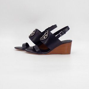 Tory Burch Wedge Sandals Size 6.5 Leather Black