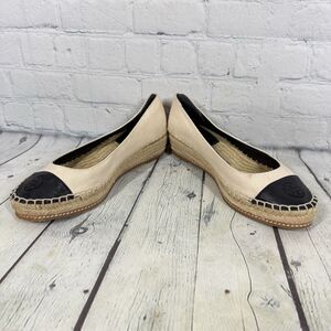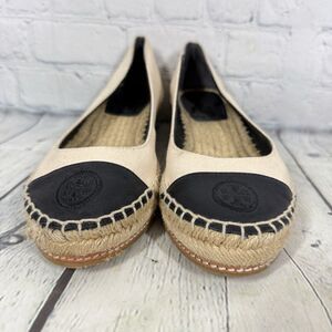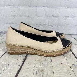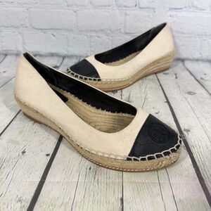 Tory Burch Wedges Women Size 7 Black Low Heel Espadrilles Canvas Preppy Shoes