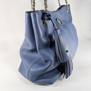 Tory Burch Whipstitch Logo Tassel Chain Strap Leather Tote Wallis Blue & Gold