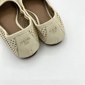 Tory Burch Whitaker Ballet Flats Sz 5.5 Perforated Leather Logo Ivory Minimalist
