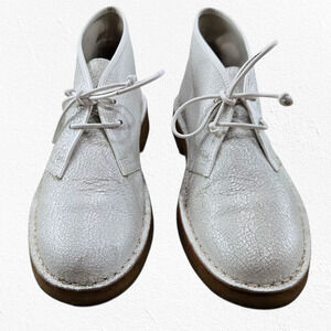 Tory Burch White Crackle Leather Desert Boots Size 7.5 Lace-Up Ankle Chukka Boot