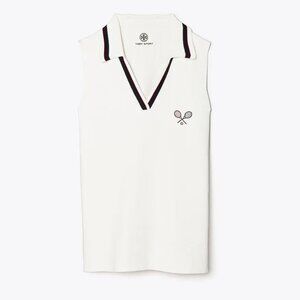 Stylish white tank top with a classic polo collar. Features a subtle tennis racket embroidery. Perfect for casual outings.