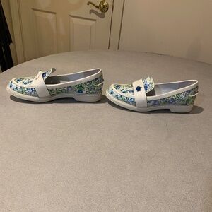 Tory Burch White/Blue/Green Golf Loafer Shoes sz 9M