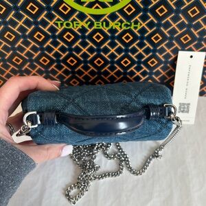 Tory Burch Willa Denim Nano Top Handle Crossbody Bag Denim Blue Silver