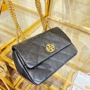 Tory Burch Willa Small Shoulder Bag 148243 Goat Leather Black $595
